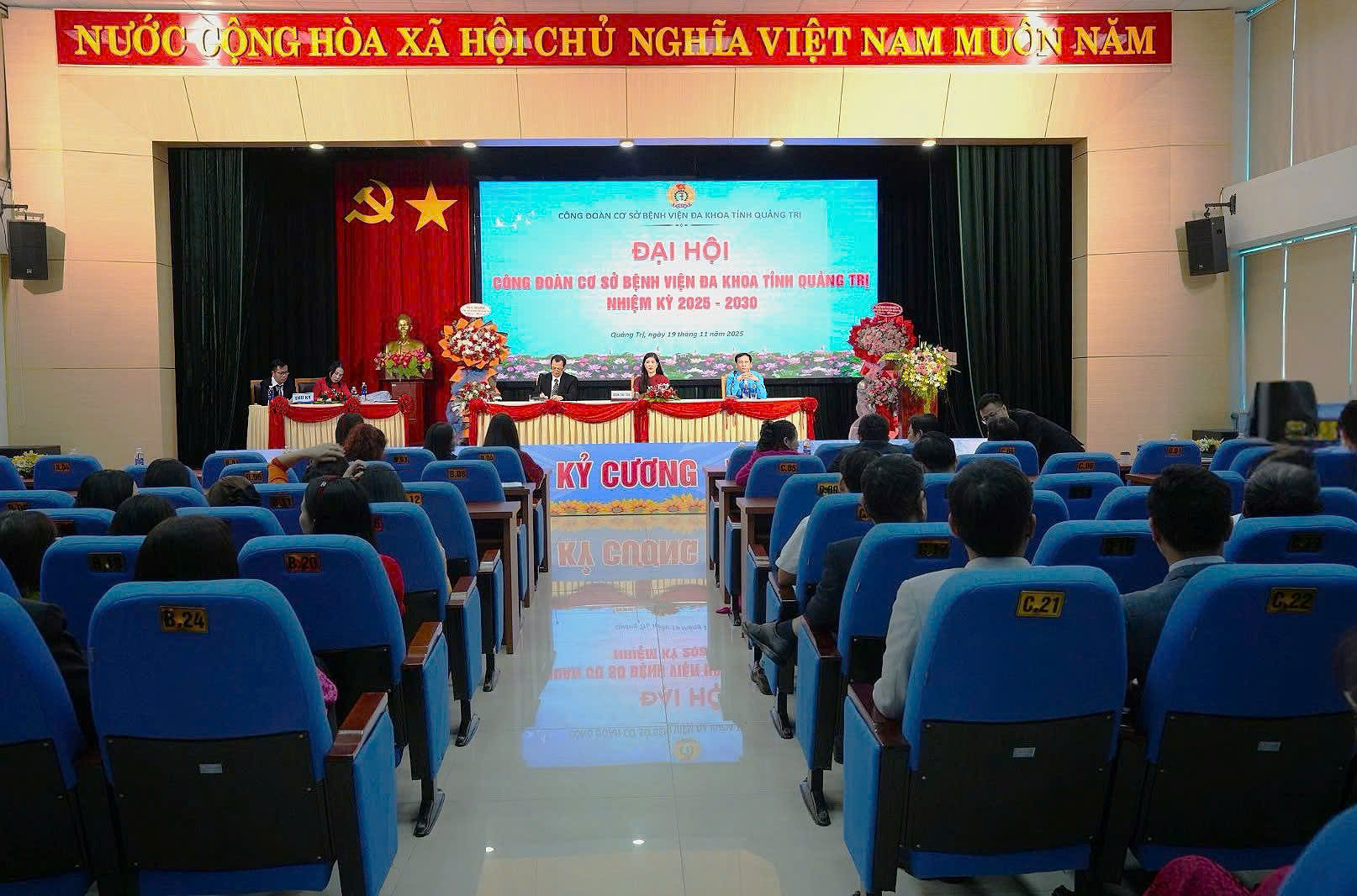 Ngày 19/11/2025, Công đoàn cơ sở Bệnh viện Đa khoa tỉnh Quảng Trị tổ chức Đại hội, nhiệm kỳ 2025 – 2030 nhằm đánh giá, tổng kết tình hình thực hiện Nghị quyết Đại hội Công đoàn cơ sở (CĐCS) nhiệm kỳ 2023-2025 và thống nhất mục tiêu, phương hướng, nhiệm vụ, giải pháp để xây dựng đội ngũ cán bộ, viên chức, công nhân lao động, tổ chức Công đoàn đáp ứng yêu cầu xây dựng và phát triển Bệnh viện Đa khoa tỉnh Quảng Trị trong nhiệm kỳ mới 2025 - 2030.