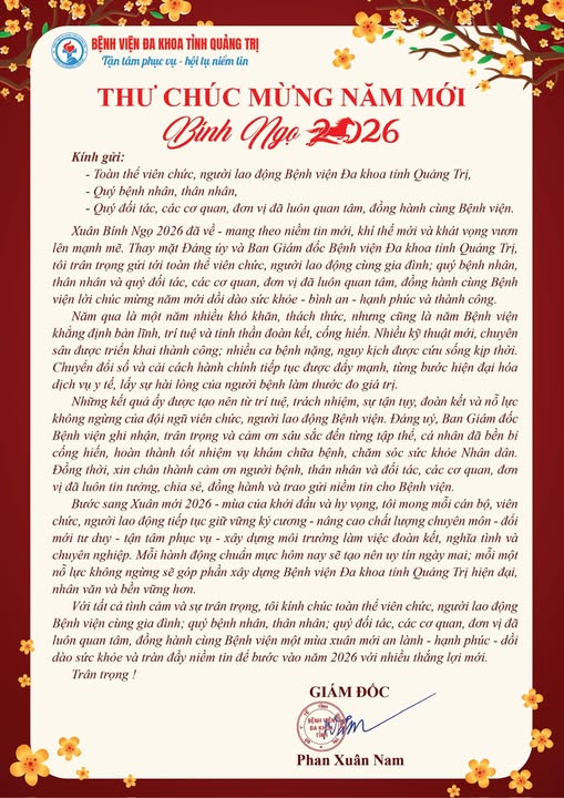 Thư chúc Tết của Giám đốc Bệnh viện Đa khoa tỉnh Quảng Trị